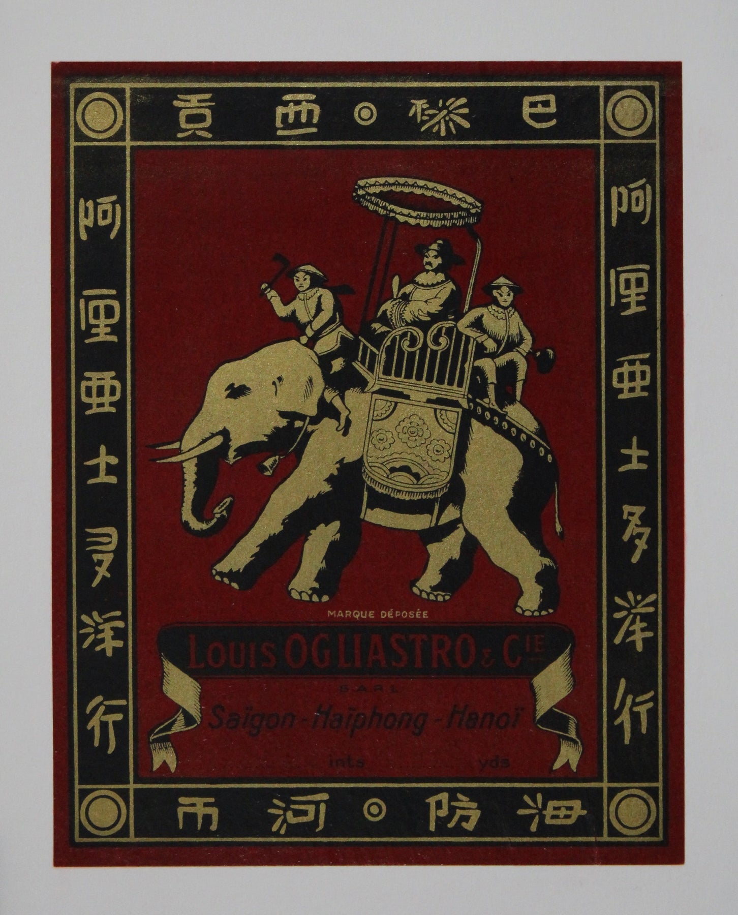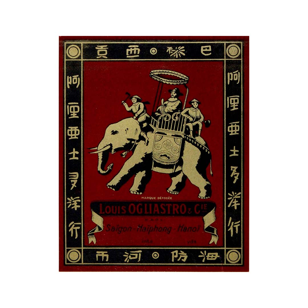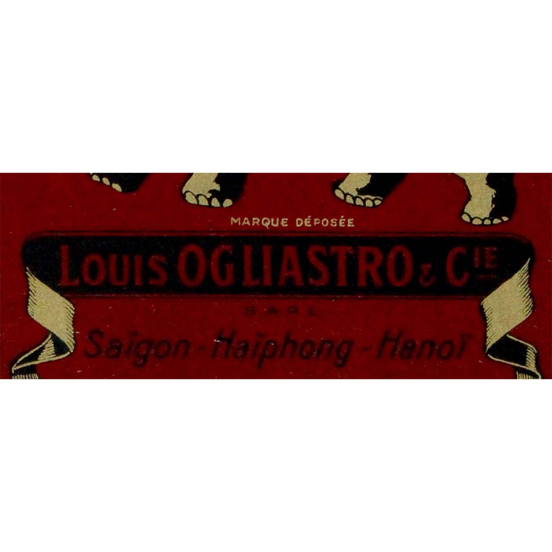 L'affiche originale de Louis Ogliastro & Cie, datant des années 1930, offre un témoignage saisissant du commerce colonial en Asie du Sud-Est, notamment dans des régions comme Saigon (aujourd'hui Hô-Chi-Minh-Ville), Haiphong et Hanoï. Ce document publicitaire servait probablement à promouvoir les activités de l'entreprise, axées sur le commerce et la distribution de marchandises en Indochine française.