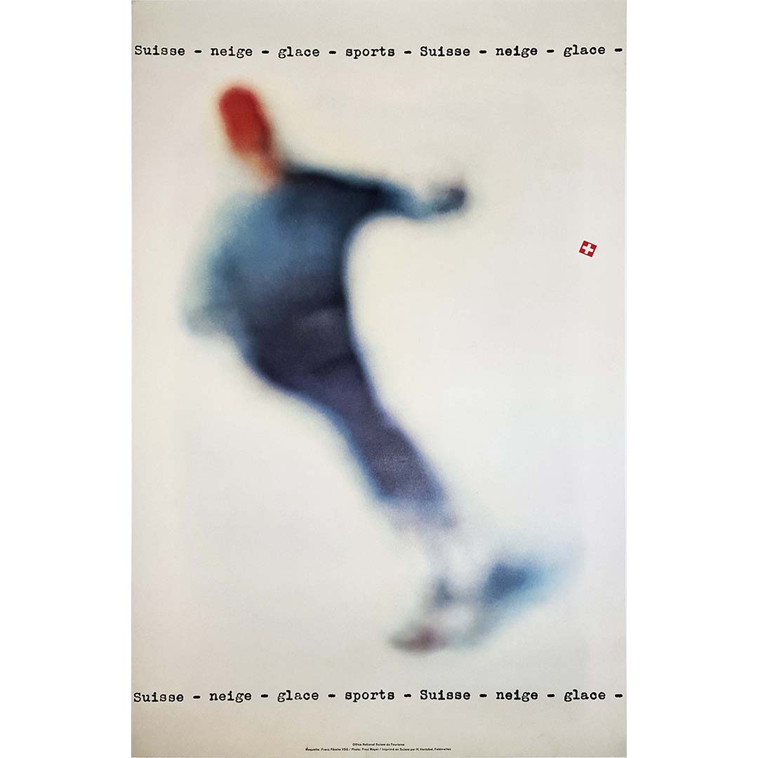 Magnifique affiche suisse de 1962 par Fred Mayer et Franz Fassler : Suisse Neige Glace Sports.