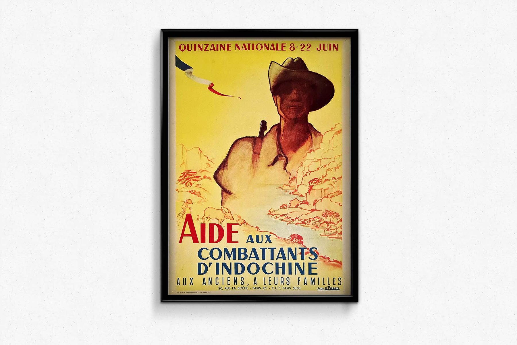 Affiche française importante et magnifique destinée à venir en aide aux soldats ayant servi en Indochine.