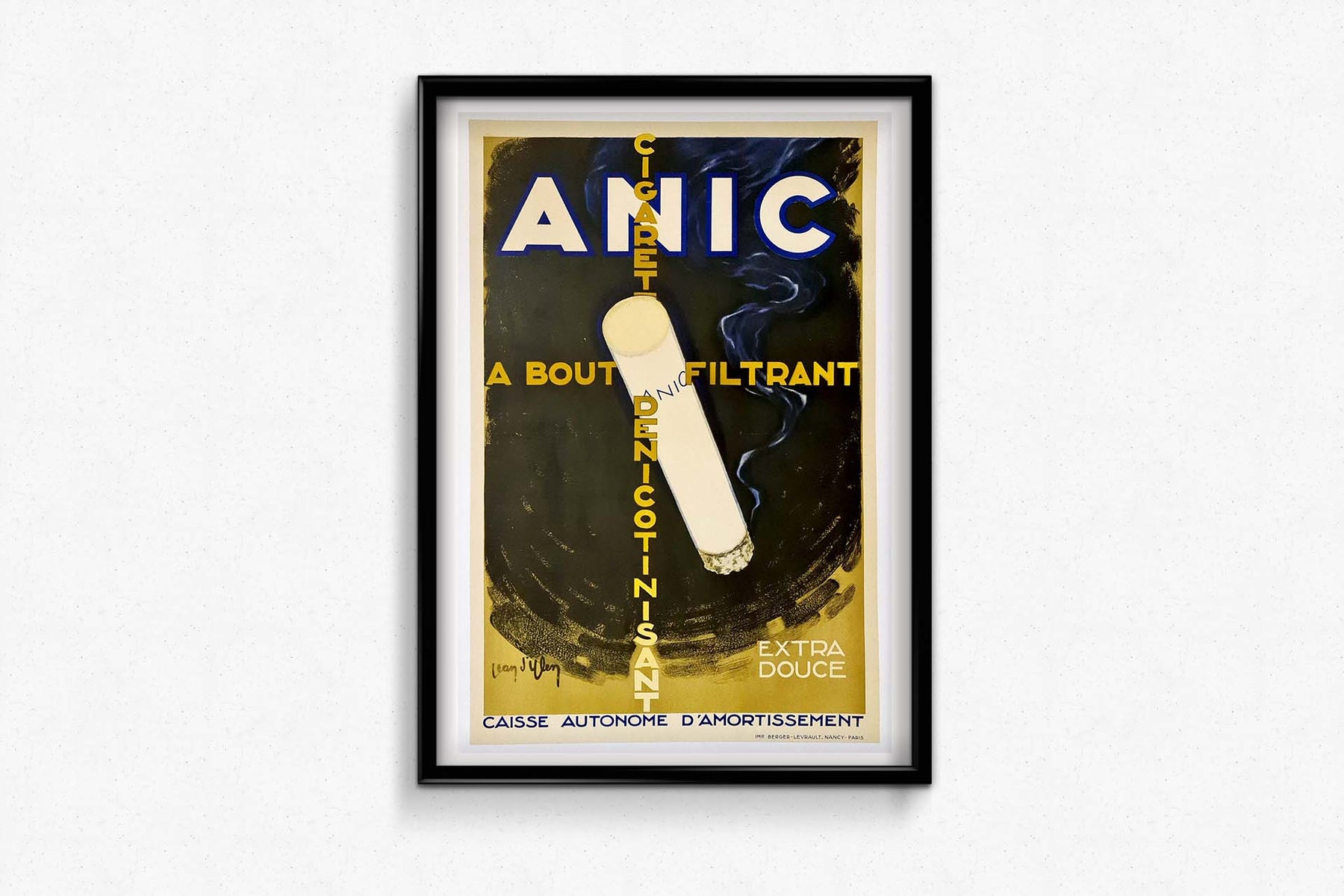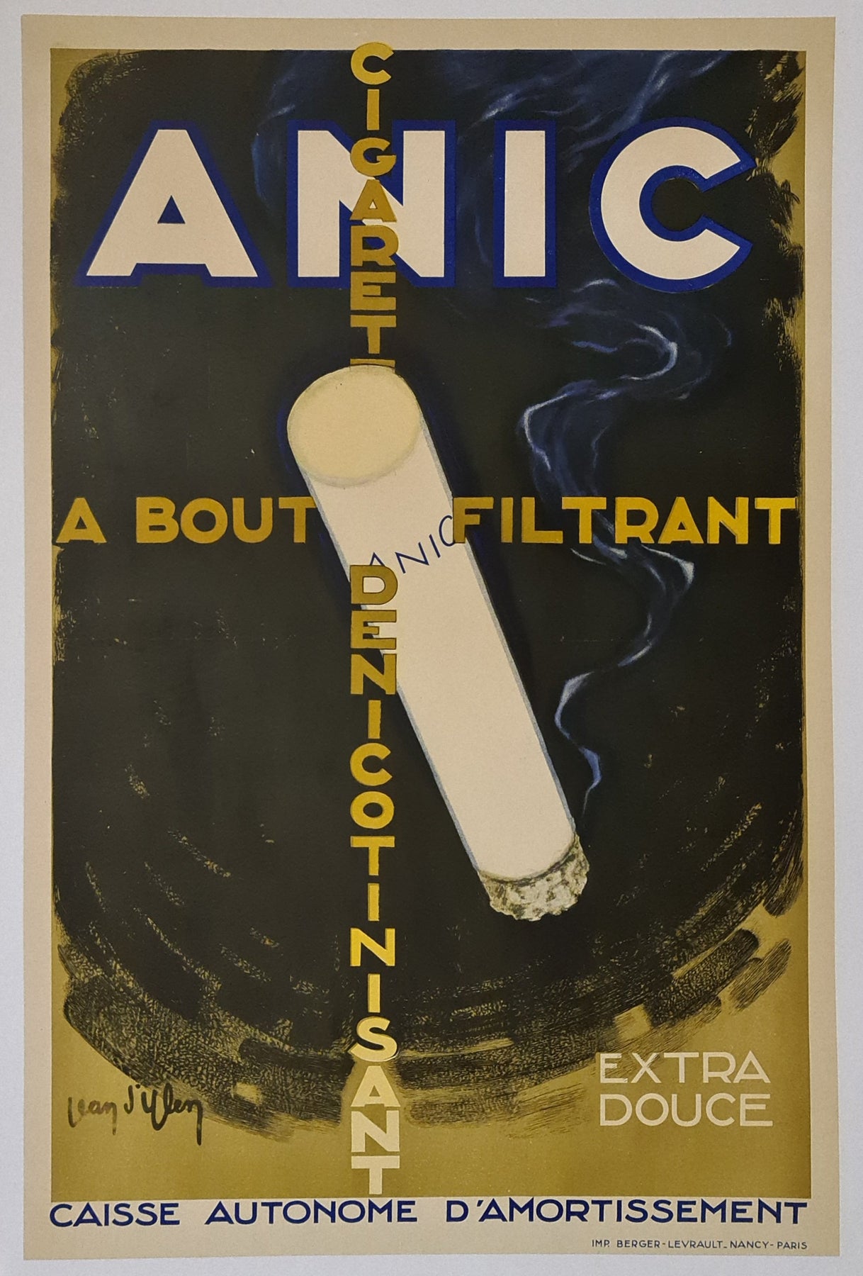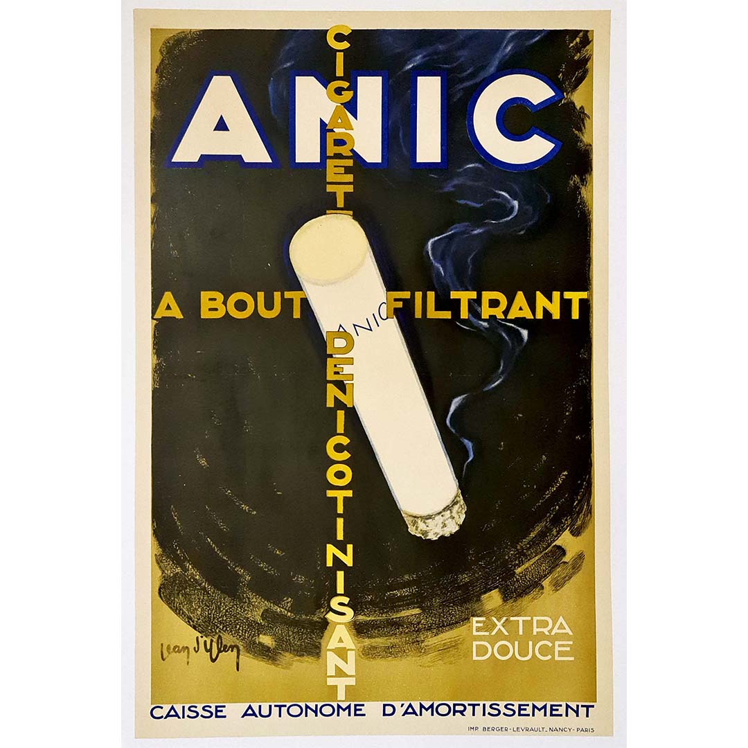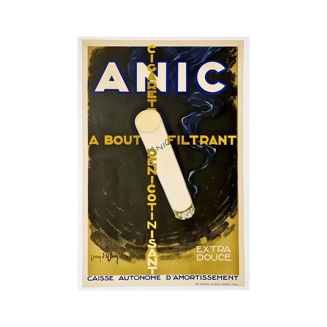 Magnifique affiche publicitaire de Jean d'Ylen pour la cigarette Anic à bout filtrant dénicotinisant.