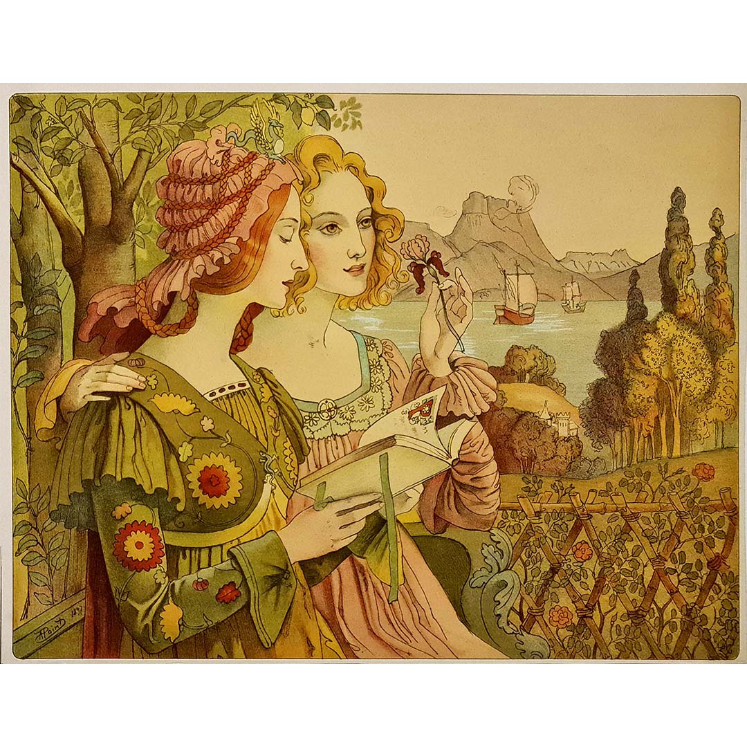 Très belle lithographie originale d'Armand Point intitulée La légende dorée.
