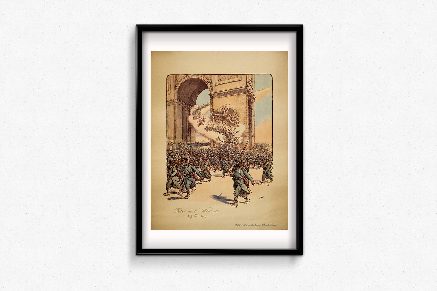 Commandée pour la Fête de la Victoire, cette lithographie est devenue l'un des symboles visuels les plus emblématiques de la reconstruction de la France d'après-guerre, rendant hommage aux vivants comme aux morts. Elle reflète une nation qui s'arrête un instant pour célébrer la fin d'une guerre brutale, mais aussi pour en reconnaître le coût et l'héritage durable.